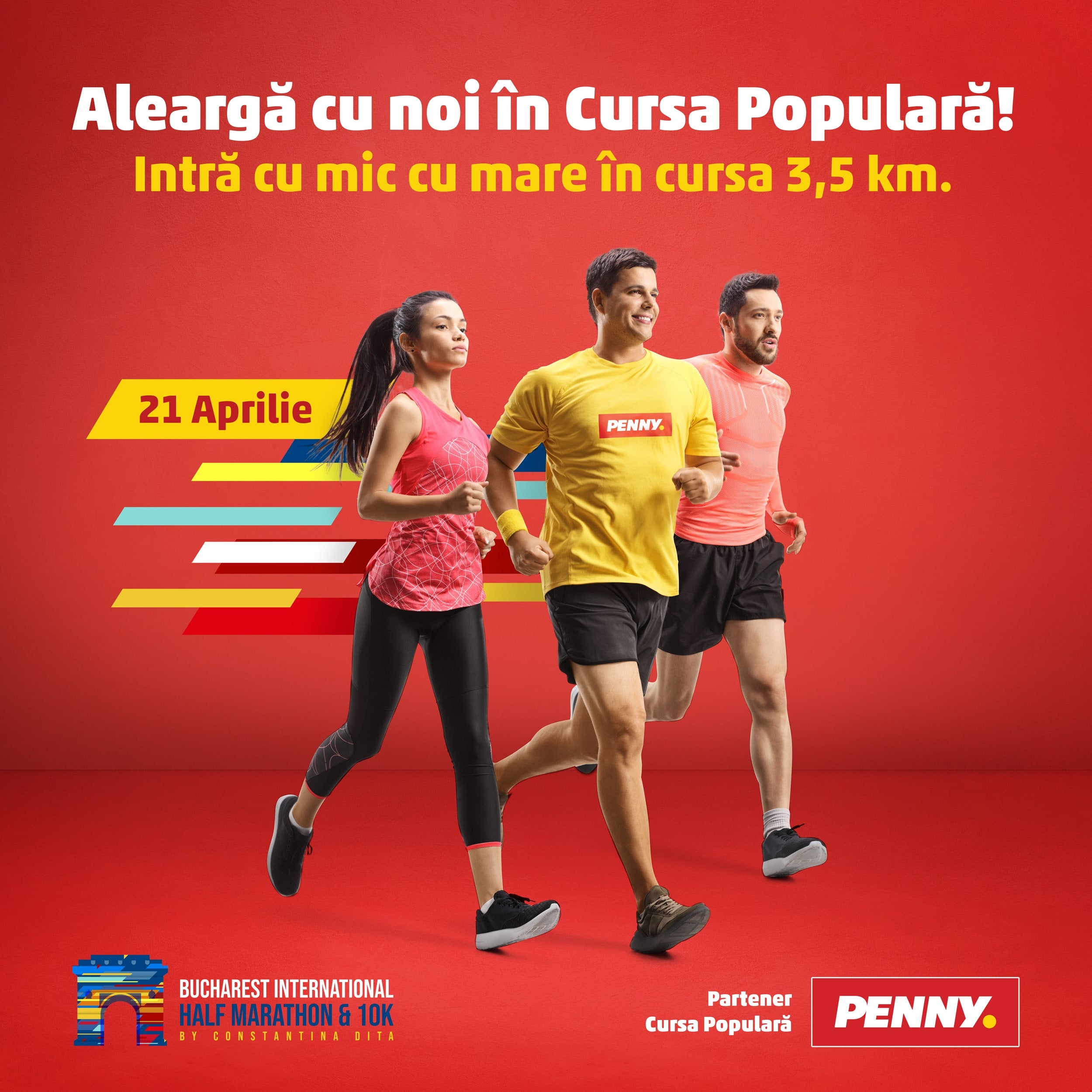 PENNY România, unul dintre cei mai dinamici retaileri de pe piața locală, este partenerul principal al Cursei Populare de 3.5 km din cadrul Bucharest International Half Marathon & 10K by Constantina Diță, un eveniment premium de alergare pe stradă, certificat de World Athletics, și organizat de Constantina Diță, campioană olimpică la maraton - Beijing 2008. Prin această colaborare, PENNY continuă să susțină un stil de viață activ și să contribuie la inițiativele care aduc valoare comunității.