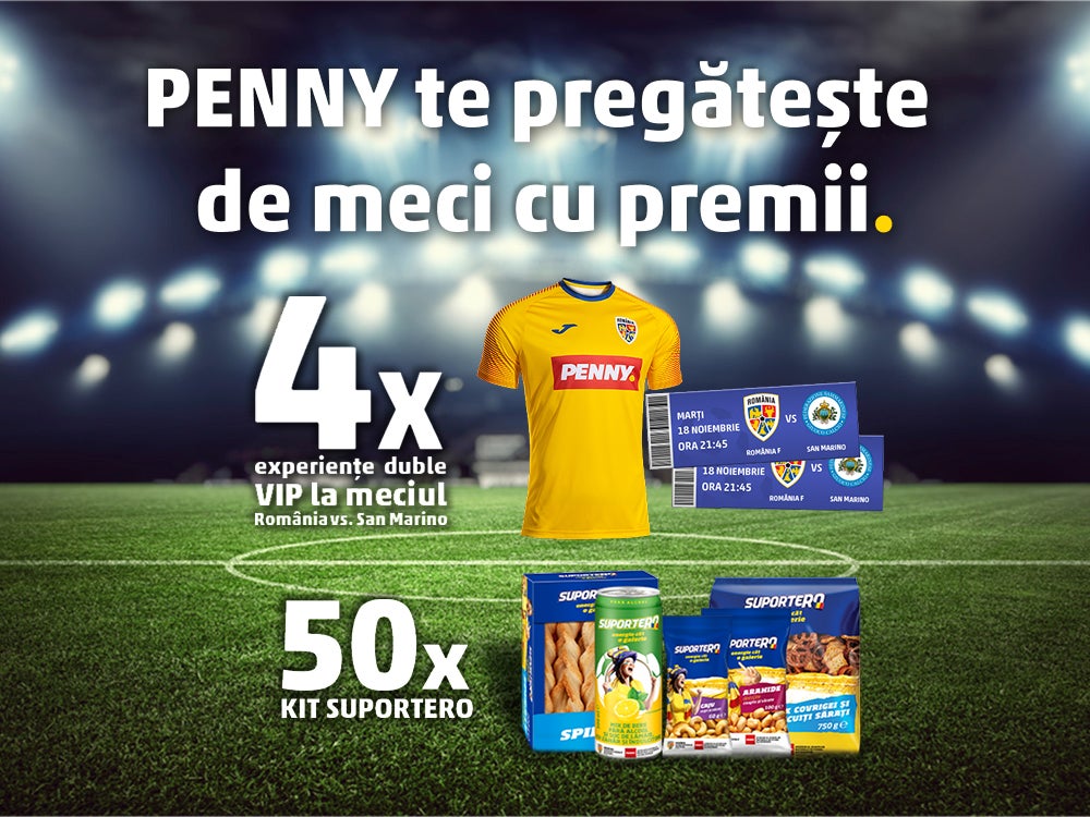 PENNY îți aduce premii cu spirit de campion! Cumpără rechizite din gama ,,Tricolorii” sau echipamente de suporter în valoare de minimum 50 de lei, în perioada 5.09.2025 – 26.09.2025 și bucură-te de premii! Descoperă produsele mai jos: