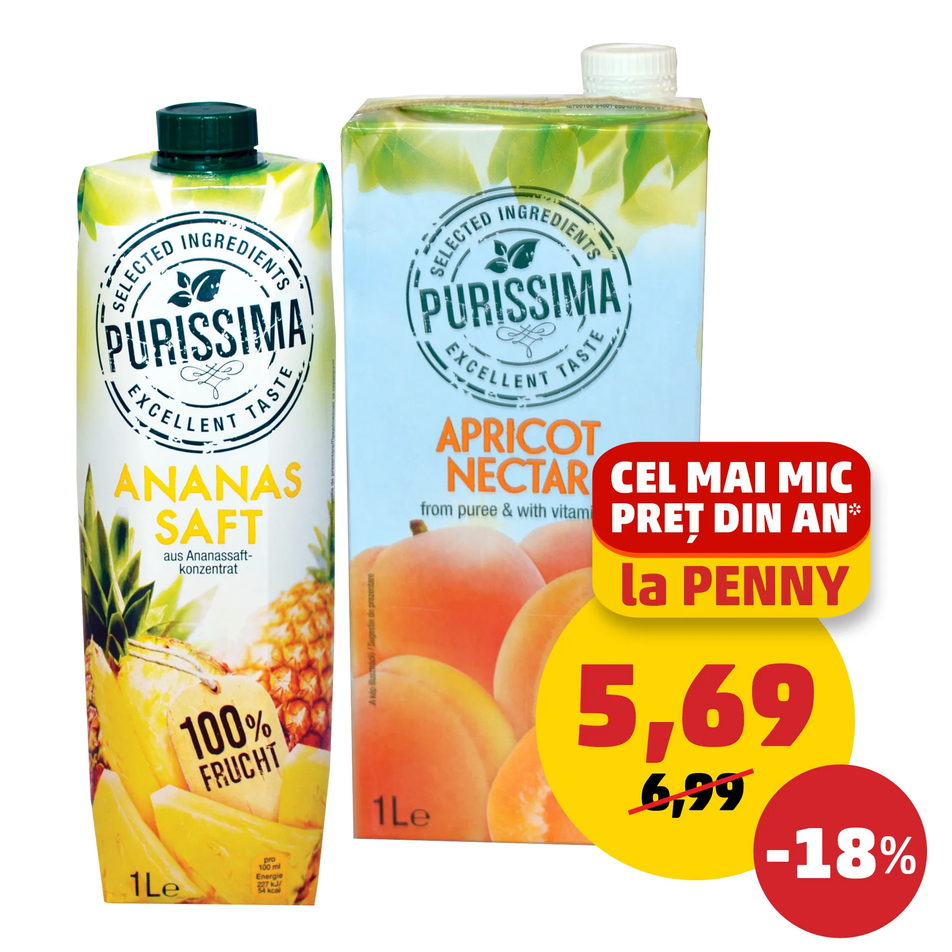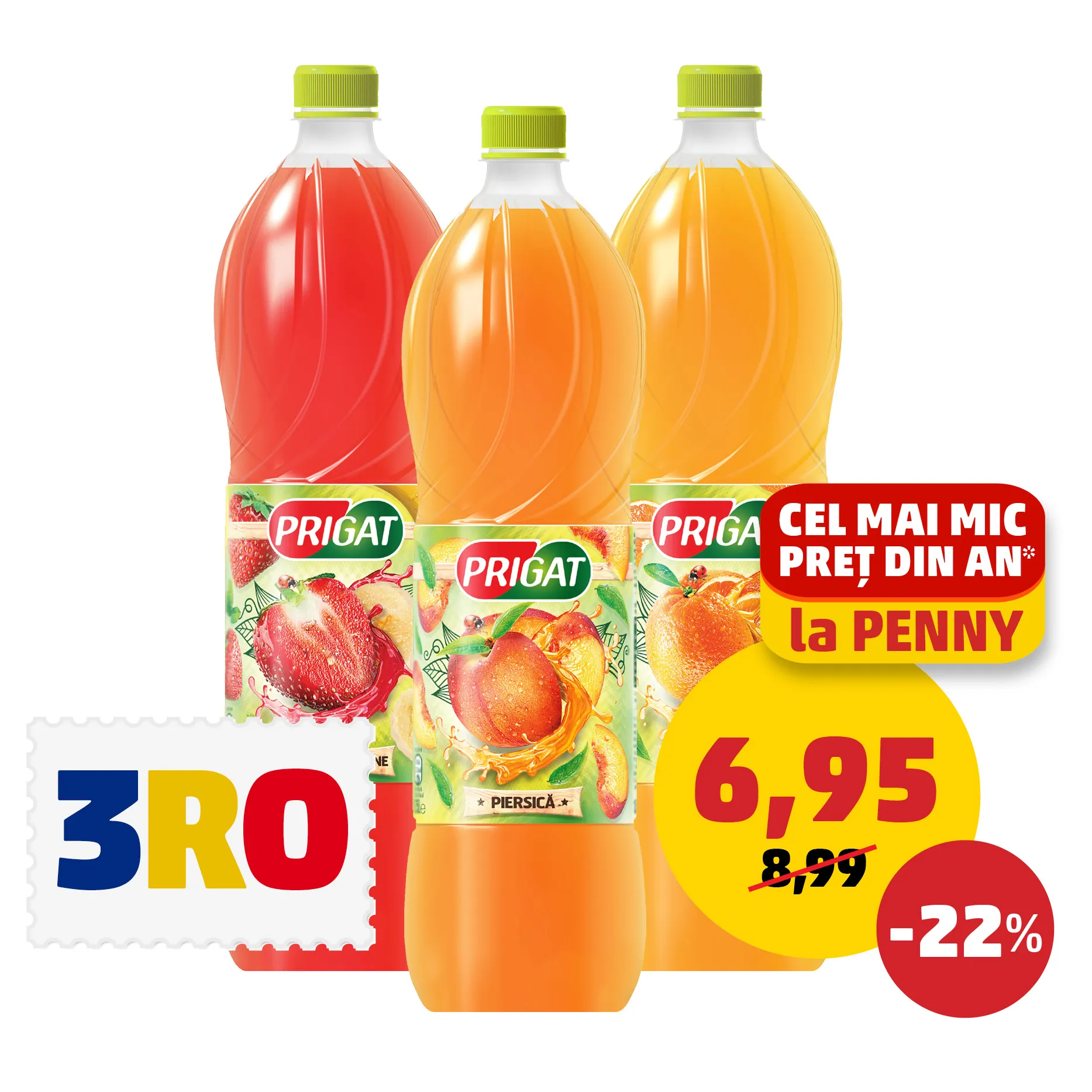 *Pentru produsele din categoria APĂ și SUC din pagină, conform monitorizării interne a prețurilor practicate în rețeaua de magazine PENNY din perioada 01.01-11.06.2024.