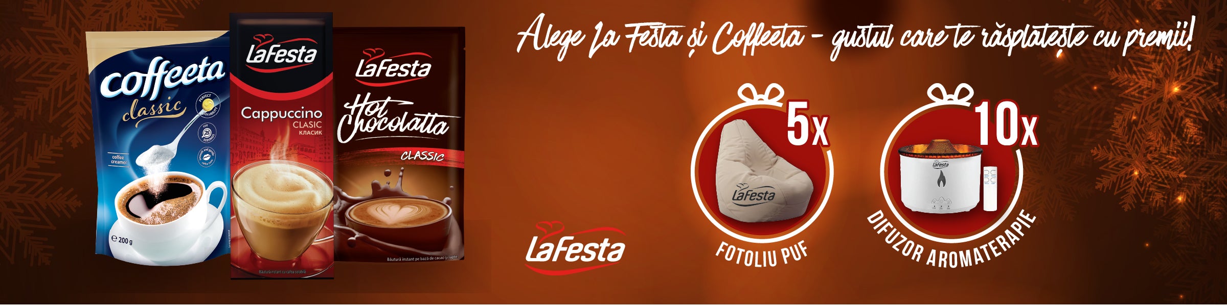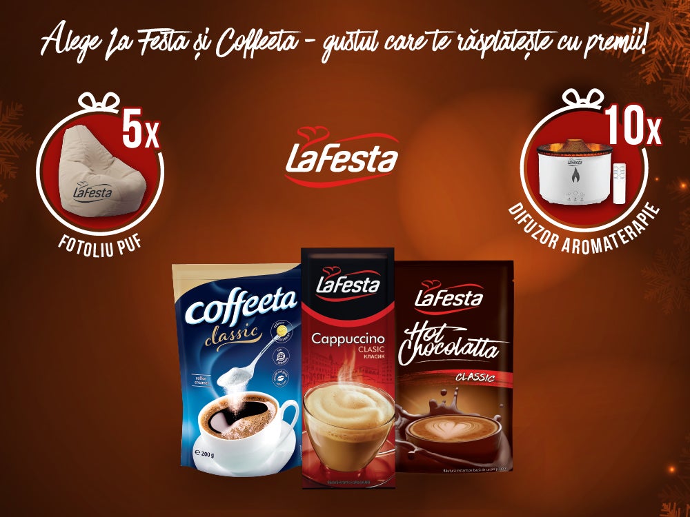 Achiziționează produse La Festa sau Coffeeta de minimum 10 lei în perioada 25.11 - 25.12.2025, scanează PENNY Card și poți câștiga: