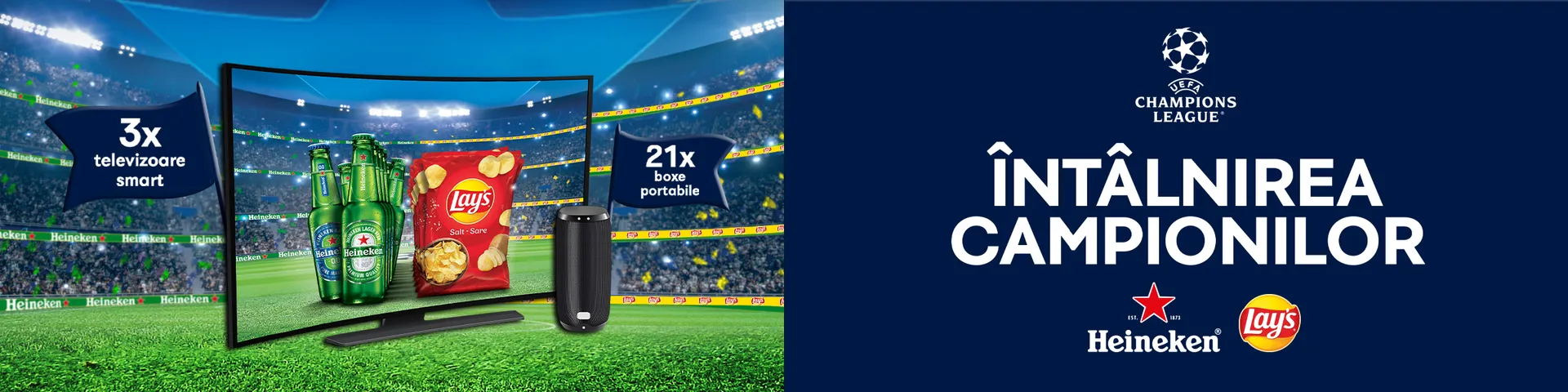 Cumpără în perioada 04.05 - 25.05.2022 minim un produs participant la promoție Lay's și un produs participant Heineken, în valoare de minim 25 LEI, scanează cardul PENNY și poți câștiga unul dintre următoarele premii:
