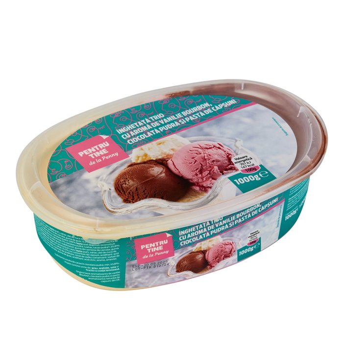 PENTRU TINE DE LA PENNY INGHETATA TRIO GUST VANILIE B.,CIOCOLATA SI CAPSUNI