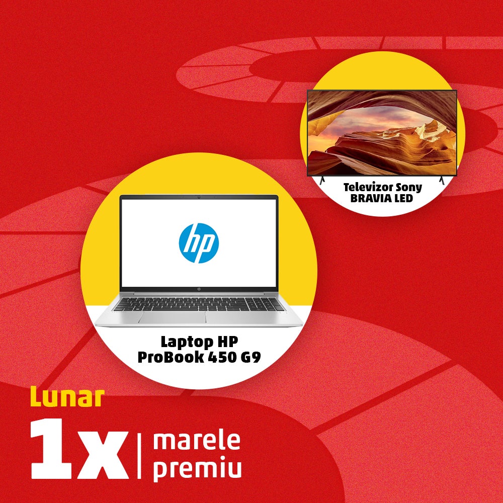 - Decembrie: Laptop HP ProBook 450 G9, cu procesor Intel Core i7-1255U